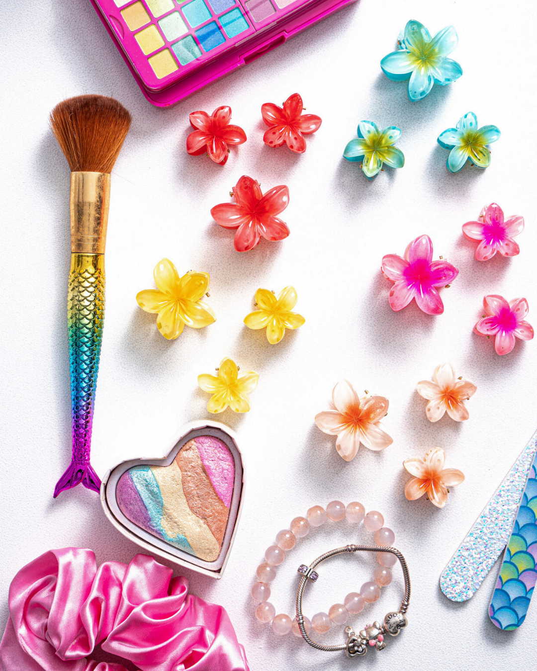 pêssego, azul, vermelha, rosa, amarelo